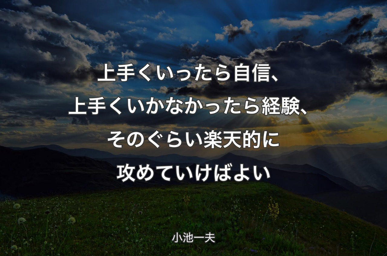 そうするともうやることなす事、『上手く言ったら自信、上手くいかなかったら経験』