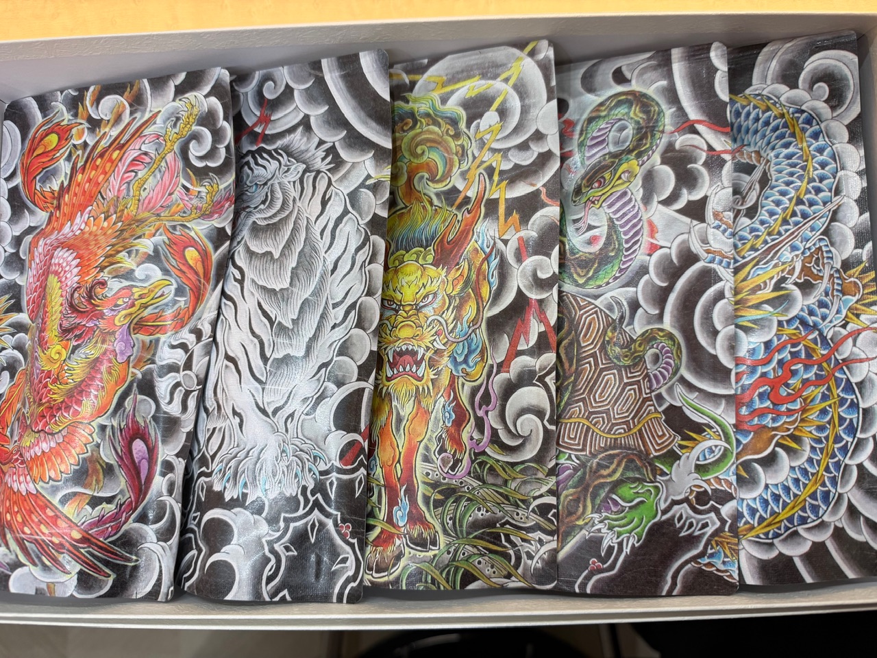 開けてみると5種類の神獣にちなんだブランド茶が。こういうめちゃカッコいいお年賀を送れるって。。僕もこういうセンス欲しいなぁ。。