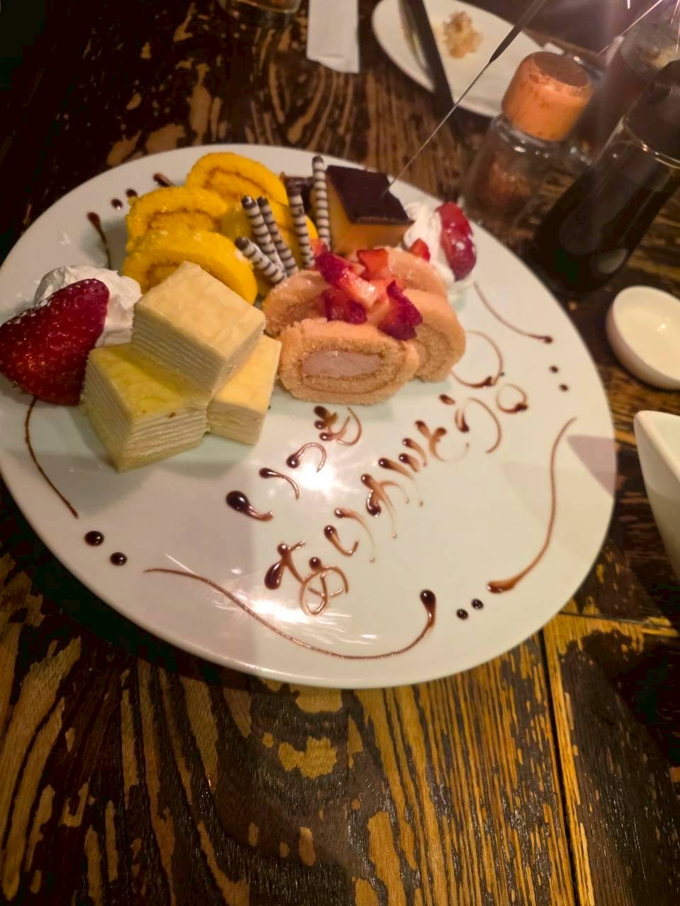 男飲みは焼酎ストレート。女飲みはデザートプレートで感謝を笑
