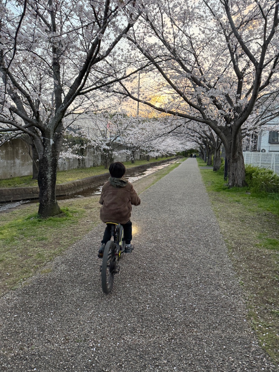 桜が散りそうだったので休日の夕方に花見ランニングしようとしたら次男が自転車でついて来てくれました(^^)